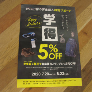 毎週木曜日はレディスデー、好日山荘ポイントカードを お持ちのお客様は5%OFFと...