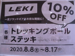 LEKIトレッキングポール、ステッキ10%OFF本日最終日です。