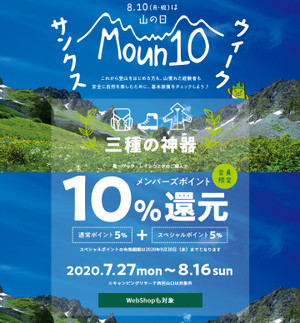 7月27日からスタートしている「山の日サンクスウィーク」 対象商品は①ザック ②...