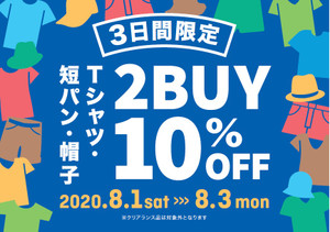 2BUY10%OFF再び!☆Tシャツ、短パン、帽子がお得!