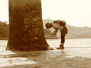 ご近所ハイキングでも、転ばぬ先の、杖とサポーター!
