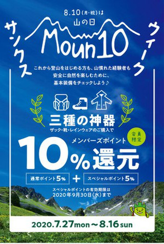 【山の日サンクスウィーク】靴・ザック・レインウエア10%ポイント還元
