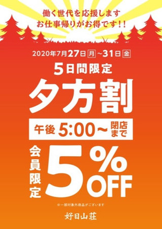 今週はお仕事帰りがお得です!! なぜなら会員様限定で午後5時から閉店時間まで5%...