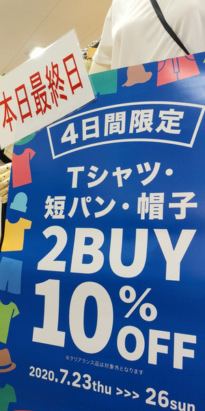 大好評企画 Tシャツ・短パン・帽子2BUY10%オフ いよいよ最終日です...