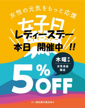 本日レディースデイ!女性限定5%OFF!