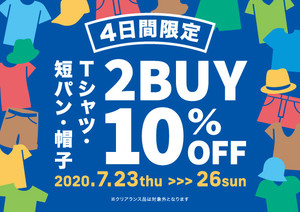 Tシャツ・短パン・帽子が2BUYで10%OFF!