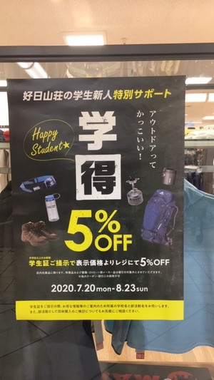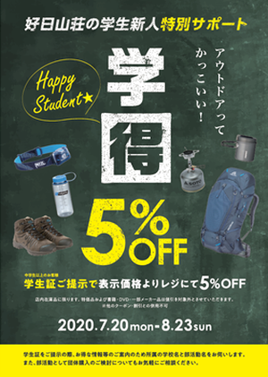 学生証提示で購入金額の5%OFF+通常メンバーズポイント 学生証をご提示の際、お...