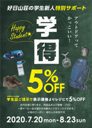 【学生さん必見!】学生証提示で5%OFFの「学割」開催中!