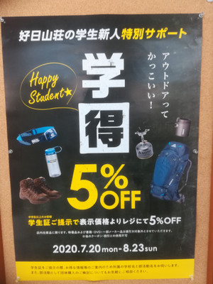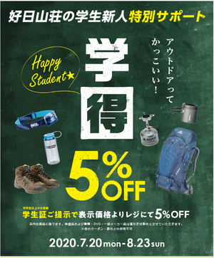 好日山荘の学生新人特別サポート!!!! 学得 5%OFF *一部割引対象外品...