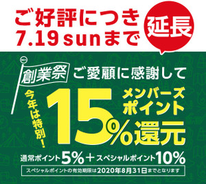 創業祭も残すところあと2日!! ポイント15%還元は7/19(日)まで! まだお...