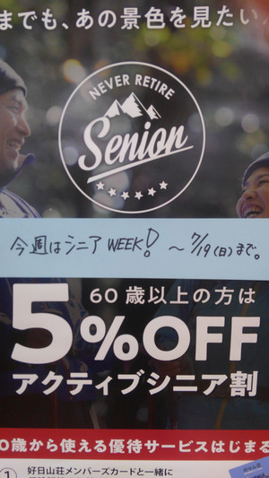 今月は特別!アクティブシニアウィーク連続開催!60歳以上の会員様は19(日)まで5%OFF!