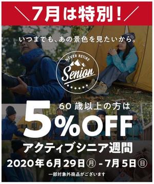 日頃の感謝を込めまして、シニアの方に嬉しいお知らせ。 本日6月29日(月)から7月5日(日)まで、 毎日アクティブシニアデー!! 60歳以上の方は5%オフでお買い物いただける、 大変お得な期間になります!! 是非この機会にみなさまお誘い合わせの上、 好日山荘に遊びにいらしてください♪ 「アクティブシニア割」は、60歳から使える好日山荘の優待サービスです。毎月1日と15日が5%オフになるお得な会員限定のサービス。 さらに、ただいま好日山荘では創業祭を開催中。 メンバーズポイントがなんと15%も還元されます!!! シニア割引後の商品にもポイント15%還元されるので大変お得です!!! お得なこの機会にぜひ夏山の準備をすすめてみてはいかがでしょうか。 【*アクティブシニア割・割引対象外あり】◆書籍DVD、クリアランス、アウトレット品◆アークテリクス、パタゴニア、ファイントラック、ビモロ、ラ・スポルティバ製品 ご入会には、好日山荘メンバーズカードと免許証、又は保険証等をレジでご提示下さい。好日山荘メンバーズへは無料で当日ご入会いただけます(年会費無料)。 詳しくは店頭スタッフまで。好日山荘 さいか屋藤沢店 0466-24-1977Staff/ozawa【Official Instagram】 Follow Me_@koujitsusansou_fujisawaFind Me_#好日山荘さいか屋藤沢店 http://www.kojitusanso.jp/support/senior/