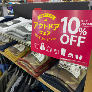 当店ではアウトドアウェア10%OFFのキャンペーンを開催中ですが 本日で最終日と...