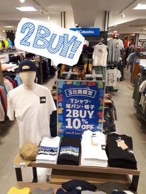 本日8月1日(土)より8月3日(月)まで Tシャツ・短パン・帽子を 2点以上お買...