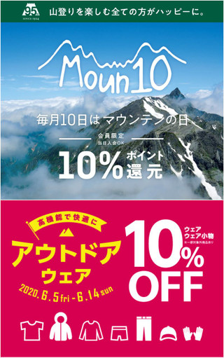 毎月恒例の「マウンテンの日」ポイント10%還元ですが、今回はさらにお得! ...