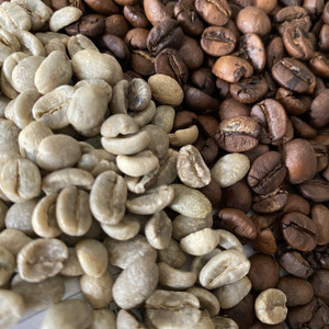 左がコーヒーの生豆、 右が焙煎後の豆です。 この挽いてるときの、 香りが最高で癒...