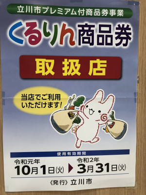 立川市のプレミアム付商品券(くるりん商品券)のご利用は本日が最終日です! お家に...