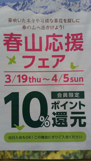 こんにちは、好日山荘マリエとやま店です。 3/19より開催していました、春山応援...