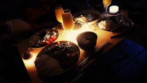 お家でキャンプ気分♪ランタンとキャンプ用のテーブルで☆