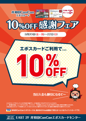 10%OFF♪♪感謝フェア 3/20(金・祝)・21(土)・22(日) に開催い...