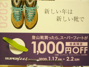 【会員限定】登山靴買ったら、スーパーフィートが1,000円OFF!