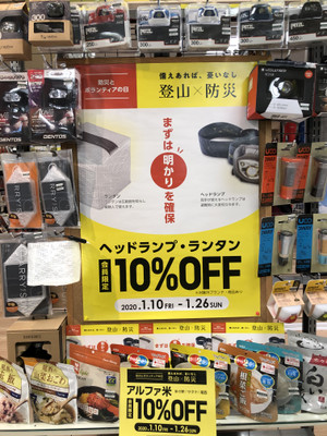 ヘッドランプなどが10%オフ!防災とボランティアの日キャンペーン!