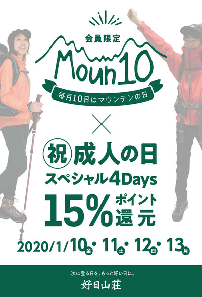 マウンテンの日 × 祝成人の日 スペシャル4Days 毎月10日はマウンテンの日...
