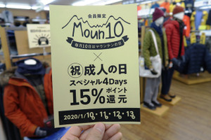 マウンテンの日 & 祝 成人の日 15%ポイント還元です!!