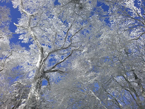 石鎚山の成就社からの登山口入ってすぐの霧氷 お正月気分もそろそろ落ち着いてきまし...