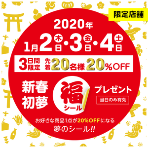【新春初夢企画】 何でも1点20%OFFになる福シール、先着20名様に!
