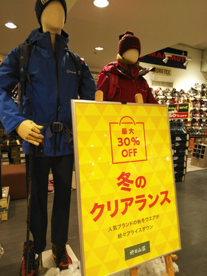 冬物ウェアのクリアランスが始まりました。 人気アウトドアブランドのウェアがお買い...