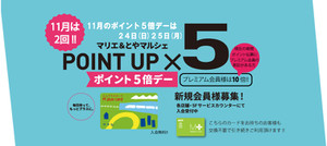 今月は2日間開催!! 明日11/24(日)・25(月)『マリエポイント5倍デー』