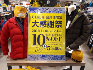 好日山荘会員様限定の大感謝祭始まりました!!冬ギアも充実してきています。