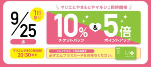 増税前最後のチャンス!! 明日9/25は10%チケットバック&マリエポイント5倍