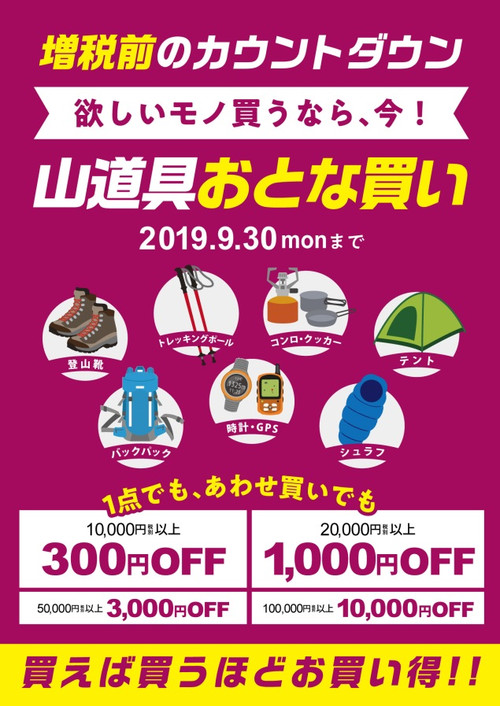 皆さまこんにちは 浜松メイワン店です 増税前のセールのご案内です 9月20日~9...