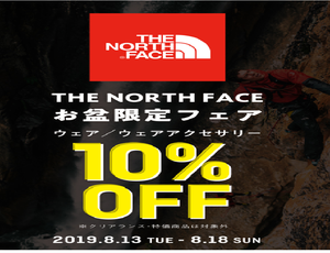ノースフェイスが10%OFF! お盆限りのキャンペーン!