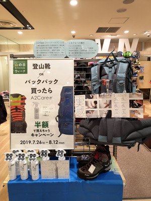 靴orバックパック購入でA2Careが半額▲山の日スペシャルウィーク