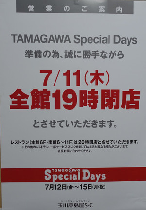 7月12日~7月15日に行われる高島屋スペシャルディズ開催準備の為、7月11日は...