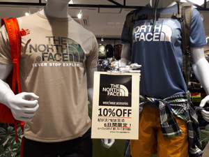 ノースフェイスのウェア類が10%OFF!!18日まで。