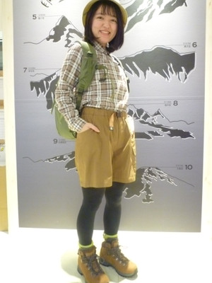 ショートパンツとチェックシャツ。 アース、地球を歩く、アクティブ登山女子は好きで...