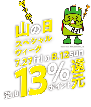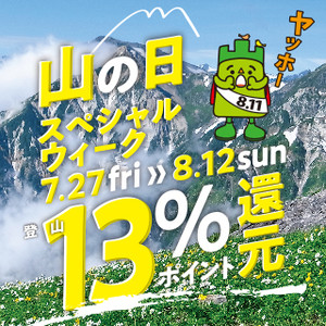 明日より山の日スペシャルウィーク開始!13(とざん)%ポイント還元!