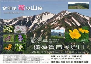 横須賀市の皆さんにお知らせです。 毎年恒例の横須賀市民登山は今年は北アルプスの薬...