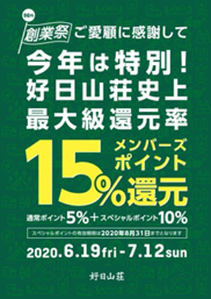 いつも好日山荘をご利用頂き誠にありがとうございます。 既にDM等でご存知の方もおられると思いますが 明日6/19(金)から7/12(日)にかけまして 好日山荘創業祭を開催致します!! 期間中に商品をご購入いただきますと メンバーズポイントカード通常5%還元に加えて スペシャルポイント10%分をお付けいたします! ※スペシャルポイントは利用有効期限が8/31(月)までとなります。 15%と過去最大級のポイント還元となるこのチャンス。 是非ご利用下さい! 皆様のご来店心よりお待ちしております! 《お問合せ》 好日山荘 さいか屋藤沢店〒251-8558神奈川県藤沢市藤沢555 さいか屋4FTel: (0466)24-1977Open: 10:00~19:00 follow me!instagram : koujitsusansou_fujisawafacebook : www.facebook.com/kojitusansoFujisawa