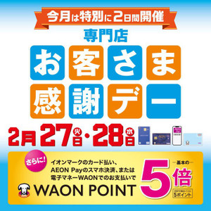 2/27(火)、28(水)は イオンお客様感謝デーを開催中! イオンマークの...
