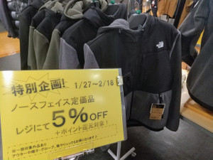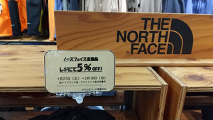 1/27(土)から2/18(日)まで ノースフェイスの商品が 5%OFF+5%ポ...