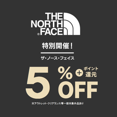 【期間限定】THE NORTH FACEの商品がレジにて5%OFF + メンバーズポイント最大10%還元!