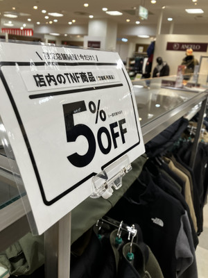 皆様こんにちは、調布パルコ店です。 本日から、 ノースフェイス商品 5%OFFで...