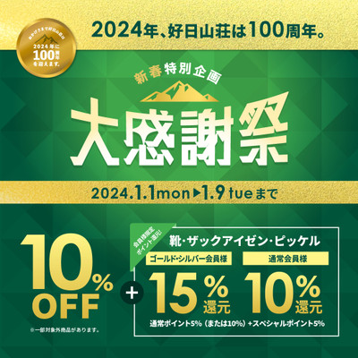 皆様こんにちは、好日山荘 立川店です。 今年は100周年。 感謝を込めて「大感謝...