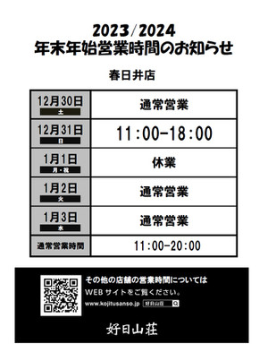 2023年もご愛顧頂き誠にありがとうございます。 年末年始の営業時間のご案内を申...