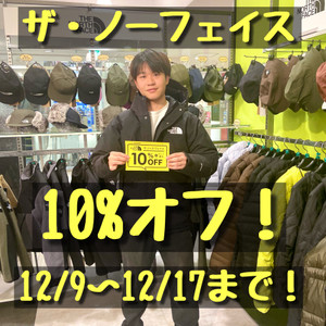 本日12/9㈯より特別開催! THE NORTH FACE 全品10%OFF!!